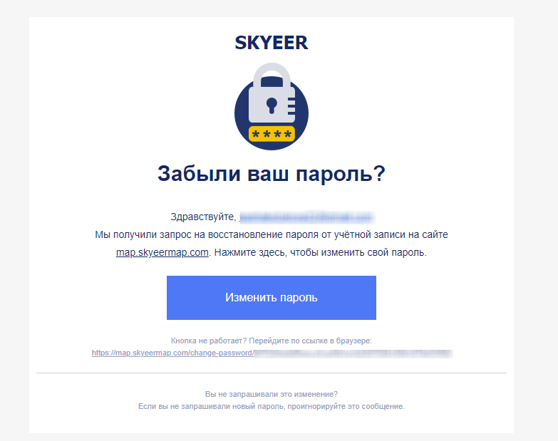 - Если вам не помог ни один описанный пункт для сброса пароля — напишите нам support@skyeermap.com или свяжитесь с менеджером вашего проекта со стороны Skyeer.