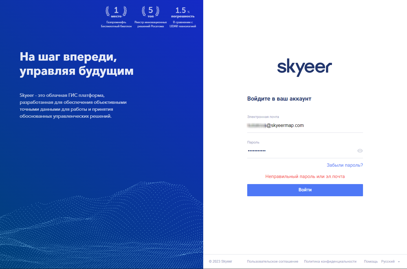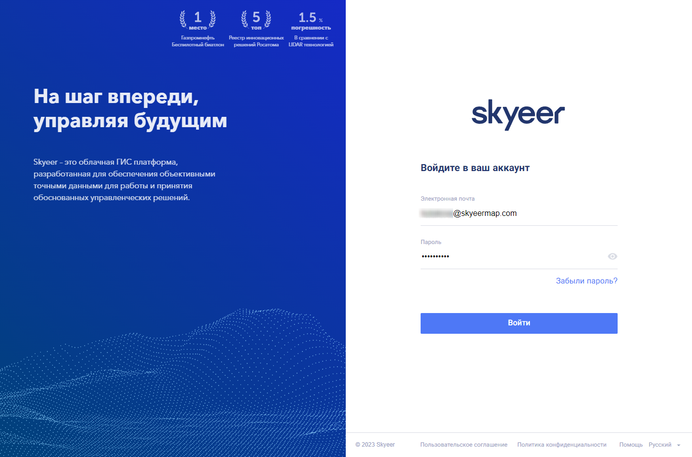 Откройте страницу входа в платформу https://map.skyeermap.com/signin