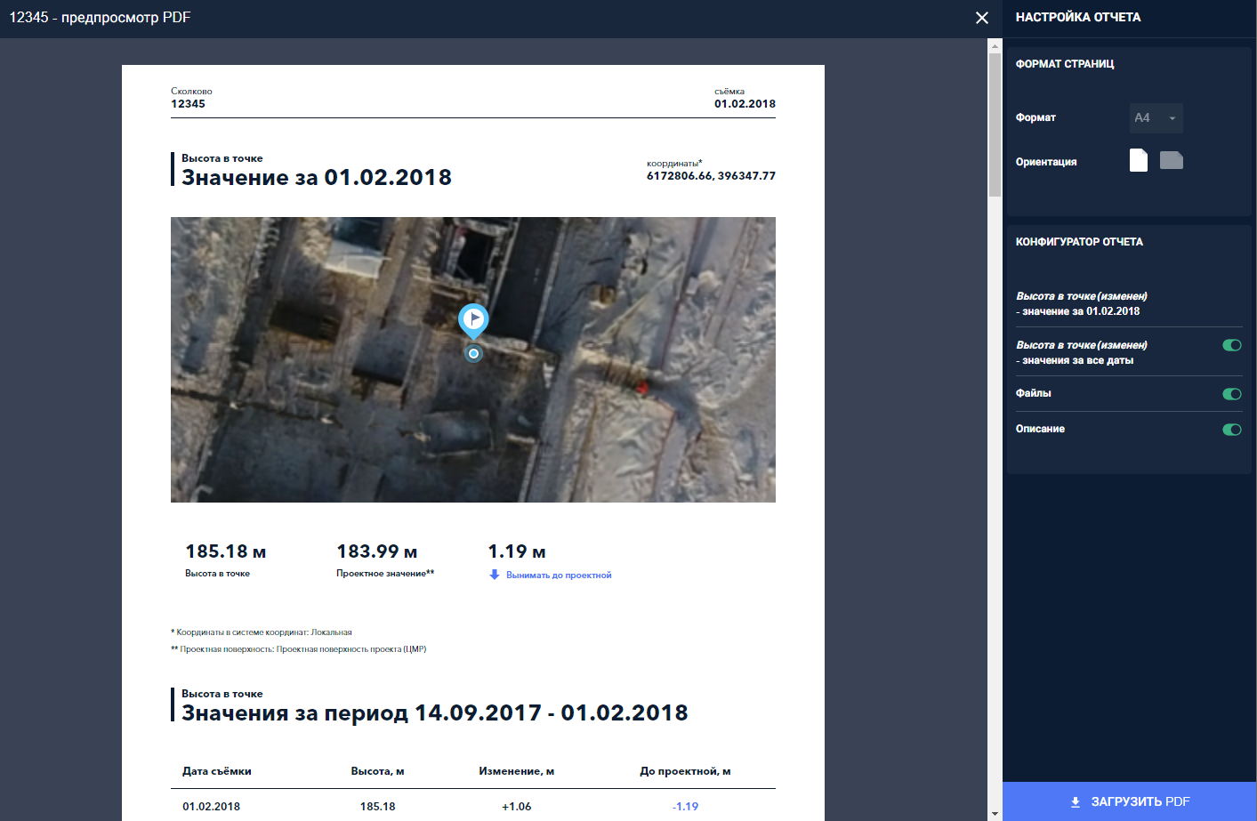 Сохраненное измерение возможно выгрузить как отчет в формате PDF.