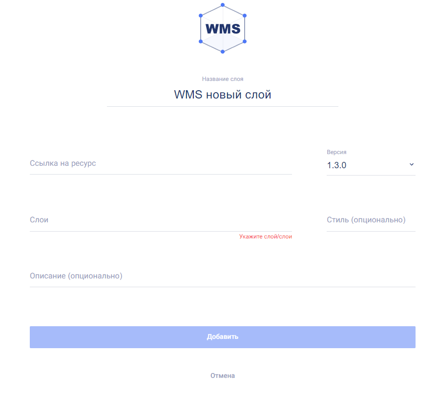 - название слоя — по умолчанию предлагается наименование “WMS новый слой”;