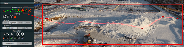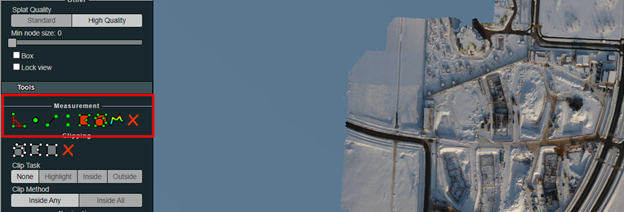 Point measurement – высота в точке. В выбранной точке будут отображенные координаты XYZ.