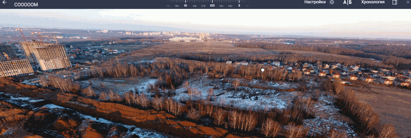 С помощью компаса можно управлять направлением взгляда пользователя на странице просмотра панорамы. Для поворота панорамы поворачивайте фотографию, зажимая левую кнопку мыши. При этом желтая стрелка компаса будет показывать направление взгляда пользователя.