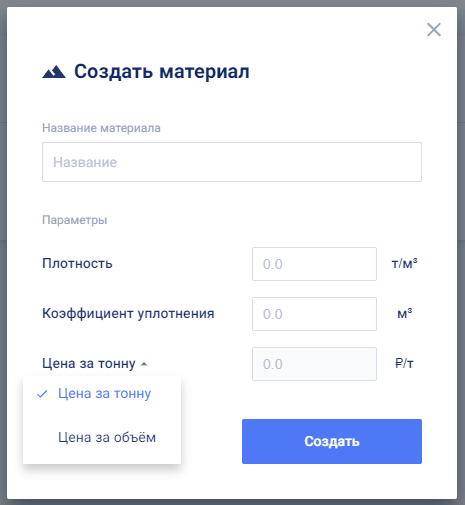 - коэффициент уплотнения — величина, равная отношению плотности сыпучего материала к его максимальное плотности. Необязательное поле для заполнения.