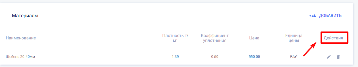 Для редактирования и удаления материала воспользуйтесь иконками в колонке “Действия”.