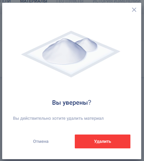 Нажмите на иконку удаления, чтобы удалить выбранный материал из проекта. Появится диалоговое окно для подтверждения действия.