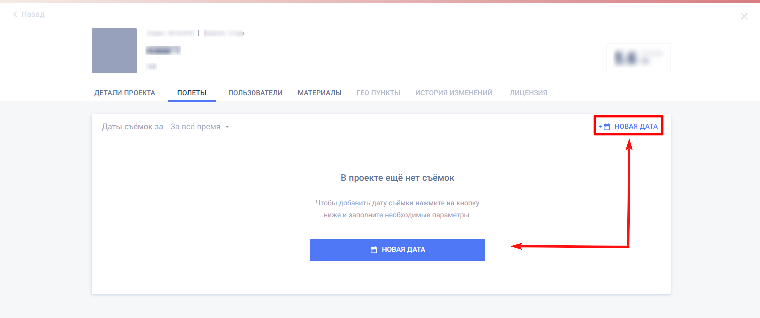Если в проекте еще нет облетов, то вкладка выглядит так.