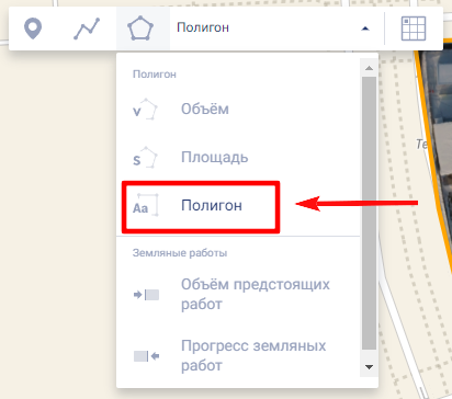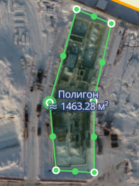 Нарисуйте на карте контур измеряемого объекта. Повторный клик по последней точке контура завершает отрисовку контура. На карте будет отображаться площадь нарисованного объекта с его наименованием.