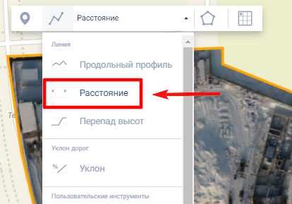 Воспользоваться инструментом “Расстояние” возможно при нажатии на иконку линии на панели инструментов: