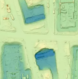 Цифровая модель местности (ЦММ), в свою очередь, как описано выше, включает в себя высотные характеристики всех объектов местности на момент съемки (растительность, машины, временные сооружения и т.д.)