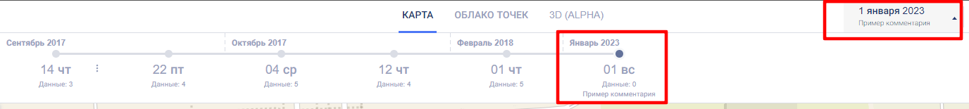 В хронологической таблице отображается созданный облет с добавленным комментарием.