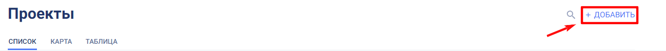 Создание нового проекта в организации доступна пользователям с ролью “Менеджер организации”. На начальной странице списка проектов отображается активная кнопка “+ Добавить”.