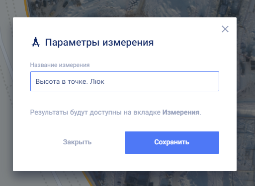 В новом диалоговом окне “Параметры измерения” задайте название измерения (по умолчанию предлагается название инструмента — “Высота в точке”) и нажмите кнопку “Сохранить”.