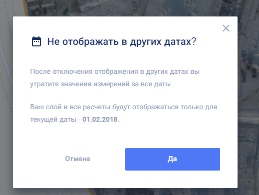 Повторное нажатие на данную иконку запускает диалоговое окно отмены отображения измерения во всех облетах.
