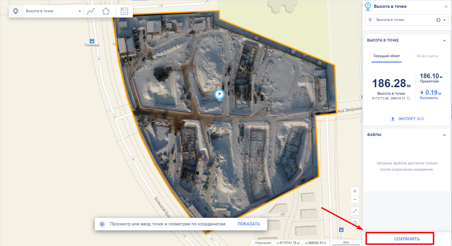 Рассмотрим сохранение результатов измерения на примере инструмента “Высота в точке”.