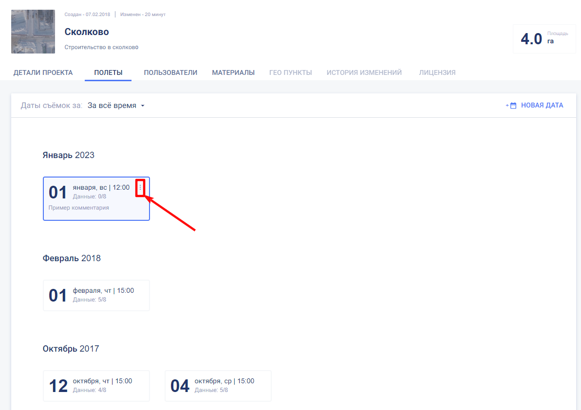 Если вы удаляете дату облета в проекте, то все данные, которые были загружены за эту дату будут также безвозратно удалены из платформы.