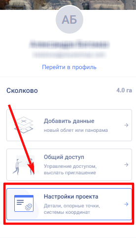 Чтобы удалить облет, выберите проект и зайдите в настройки проекта.