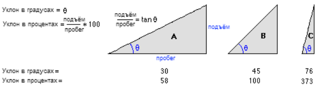 Процент подъема — это подъем, деленный на пробег, умноженный на 100.
