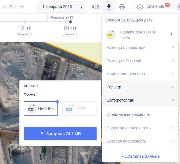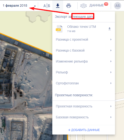 В зависимости от того, какие данные были загружены в облет, можно выполнить экспорт: